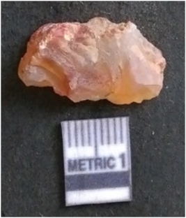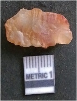 | Description / विवरण | The chalcedony flake is pale in colour and translucent in appearance. The piece has s harp flaked ends and a bulbous end due to flaking. The flake has a crypto-crystalline silica matrix. |