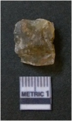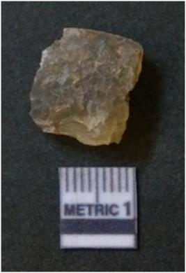 | Description / विवरण | It is chalcedony flake, translucent in appearance. The piece shows sharp pointed ends and flake scars on the surface as a result of flaking. The piece shows a bulb of percussion. |