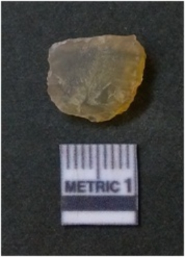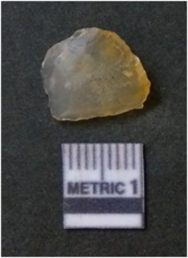 | Description / विवरण | It is chalcedony flake, translucent in appearance. The piece shows sharp pointed ends and flake scars on the surface as a result of flaking. The piece shows a bulb of percussion. |