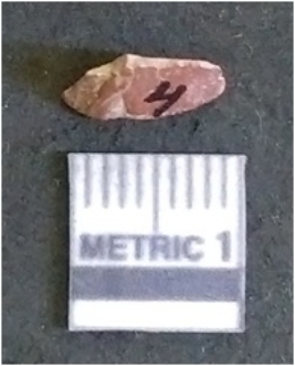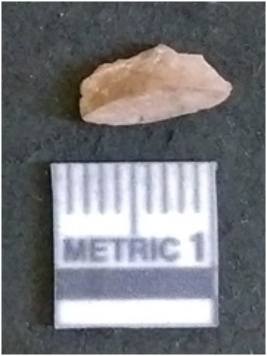 | Description / विवरण | The chert flake has a clear striking platform and ripple marks on the surface as a result of flaking. The piece is smooth, with regular fracture pattern and matt finish on the surface with a prominent bulb of percussion nd sharp flaked edges. |