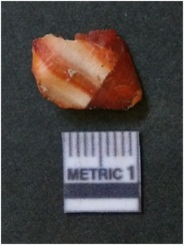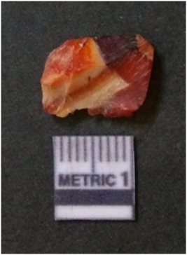 | Description / विवरण | The banded agate piece is crystalline in nature, with a smooth fracture pattern and visible bands on the flaked sides. The piece is pale in color and has sharp flaked ends. |