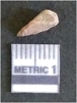 | Description / विवरण | The chert flake has a clear striking platform and ripple marks on the surface as a result of flaking. The piece is smooth, with regular fracture pattern and matt finish on the surface with a prominent bulb of percussion nd sharp flaked edges. |