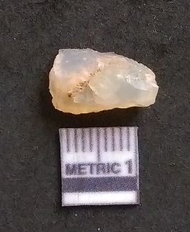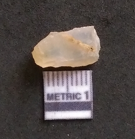 | Description / विवरण | It is a chalcedony flake, with a bulb of percussion on the ventral side. Cortex on one end. |