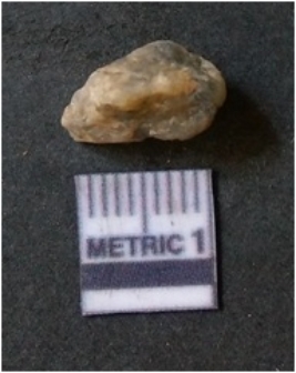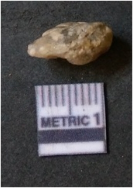 | Description / विवरण | The chert piece is dark in color, with a prominent bulb of percussion and sharp flaked edges. The piece is a part of lithic debitage or raw material for lithic knapping. The piece shows clear ripple marks and bulb of percussion. |