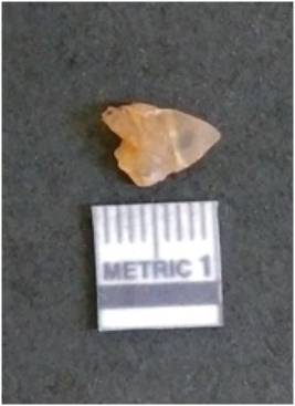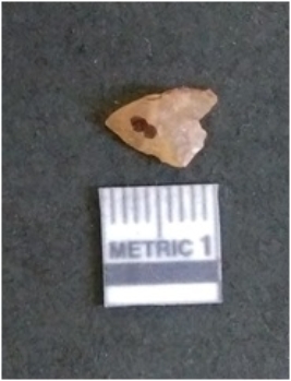 | Description / विवरण | The carnelian flake is red in colour, with angular flaked edges and a bulbous end. The piece has sharp pointed end and a crypto-crystalline matrix. The piece is reddish in colour; with silica base. |