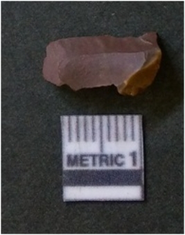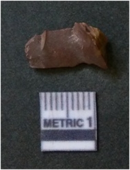 | Description / विवरण | The chert piece is dark in color, with a prominent bulb of percussion and sharp flaked edges. The piece is a part of lithic debitage or raw material for lithic knapping. The piece shows clear ripple marks and bulb of percussion. |