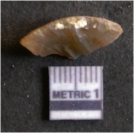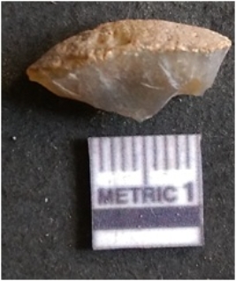 | Description / विवरण | It is chalcedony flake, translucent in appearance. The piece shows sharp pointed ends and flake scars on the surface as a result of flaking. The piece shows a bulb of percussion. |