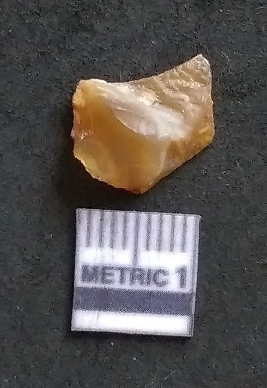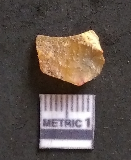 | Description / विवरण | It is a chalcedony flake, with a bulb of percussion on the ventral side. Cortex on one end. |