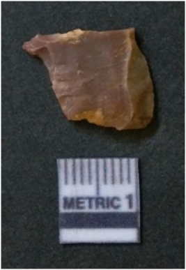 | Description / विवरण | The flake has negative bulb of percussion and semi translucent appearance. The piece is squarish in shape flat and has flaked edges. |