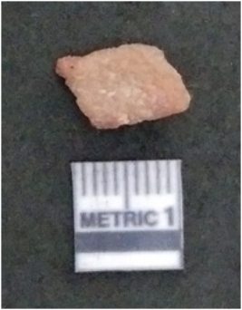 | Description / विवरण | The carnelian flake is red in colour, with angular flaked edges and a bulbous end. The piece has sharp pointed end and a crypto-crystalline matrix. The piece is reddish in colour; with silica base. |