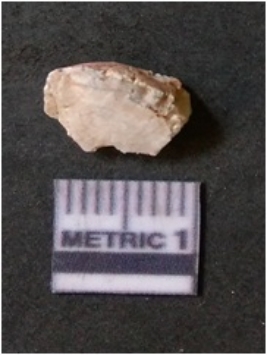 | Description / विवरण | The milky quartz flake has irregular fracture pattern and sharp flaked edges as a result of lithic knapping activity. The piece is pale, with surfacial flake scars and a bulbous end. The flake is white in color. |