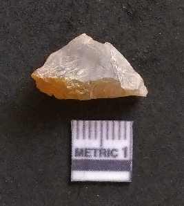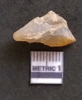 | Description / विवरण | It is a chalcedony flake, with a bulb of percussion on the ventral side. Cortex on one end. |