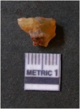 | Description / विवरण | It is chalcedony flake, translucent in appearance. The piece shows sharp pointed ends and flake scars on the surface as a result of flaking. The piece shows a bulb of percussion. |