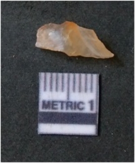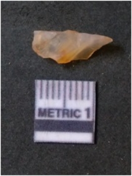| Description / विवरण | It is chalcedony flake, translucent in appearance. The piece shows sharp pointed ends and flake scars on the surface as a result of flaking. The piece shows a bulb of percussion. |