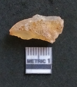 | Description / विवरण | It is a chalcedony flake, with a bulb of percussion on the ventral side. Cortex on one end. |
