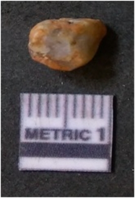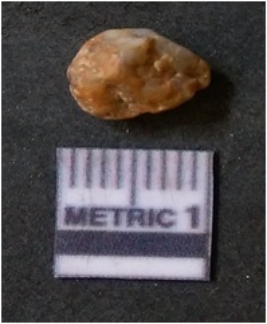 | Description / विवरण | The chert piece is dark in color, with a prominent bulb of percussion and sharp flaked edges. The piece is a part of lithic debitage or raw material for lithic knapping. The piece shows clear ripple marks and bulb of percussion. |