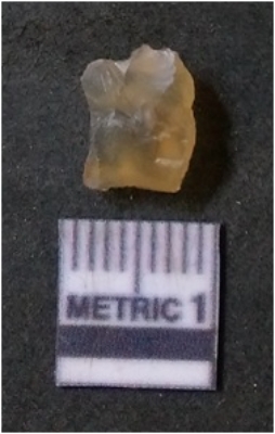 | Description / विवरण | It is chalcedony flake, translucent in appearance. The piece shows sharp pointed ends and flake scars on the surface as a result of flaking. The piece shows a bulb of percussion. |
