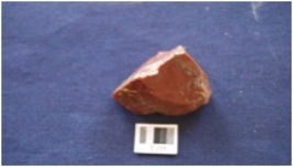 | Description / विवरण | A Chert bi-directional Core with flakescars, byproduct of stone tool manufacturing, prepared platform along one end. |