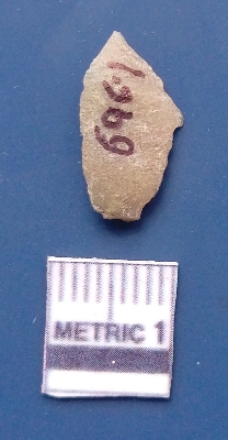 | Description / विवरण | It is a blade fragment. The sides are sharp and retouched. It is greyish in colour. The striking platform and the bulb of percussion is clearly visible. The flake scars are clearly seen on the dorsal surface while the ventral surface is plain. |