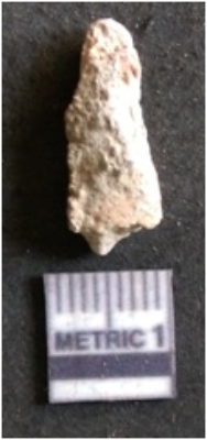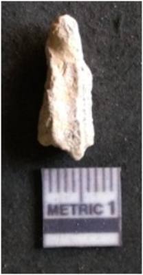| Description / विवरण | The chert piece is dark in color, with a prominent bulb of percussion and sharp flaked edges. The piece is a part of lithic debitage or raw material for lithic knapping. The piece shows clear ripple marks and bulb of percussion. |