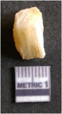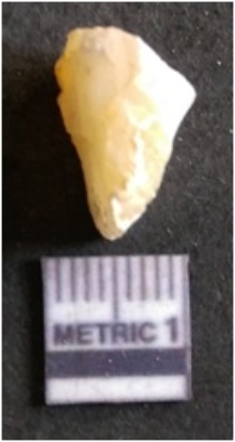 | Description / विवरण | The banded agate piece is crystalline in nature, with a smooth fracture pattern and visible bands on the flaked sides. The piece is pale in color and has sharp flaked ends. |