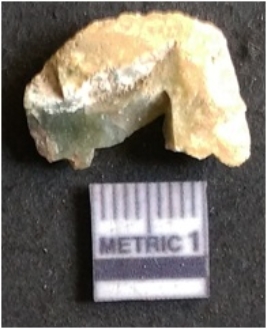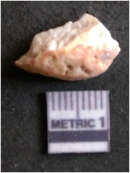 | Description / विवरण | The milky quartz flake has sharp flaked edges and pointed ends as a result of flaking. The piece is semi-transparent in nature with irregular fracture pattern. The piece is roughly triangular in shape and has a prominent bulb of percussion. |
