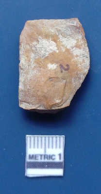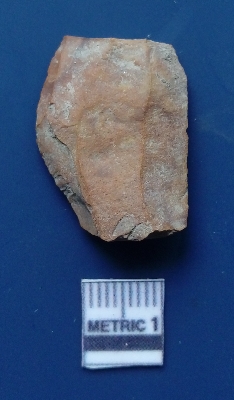 | Description / विवरण | It is a blade fragment. The sides are sharp and retouched. It is yellowish in colour. The striking platform and the bulb of percussion is clearly visible. The flake scars are clearly seen on the dorsal surface while the ventral surface is plain. |