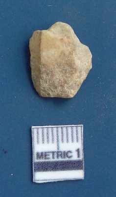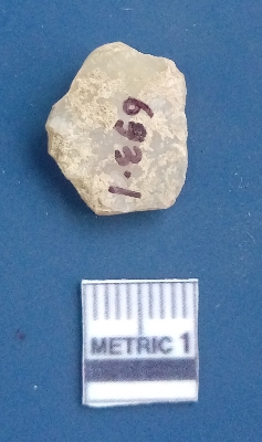 | Description / विवरण | It is a blade fragment. The sides are sharp and retouched. It is white in colour. The striking platform and the bulb of percussion is clearly visible. The flake scars are clearly seen on the dorsal surface while the ventral surface is plain. |