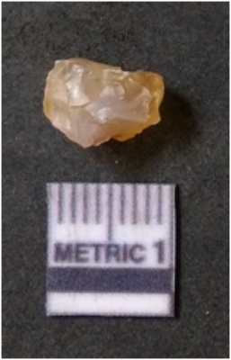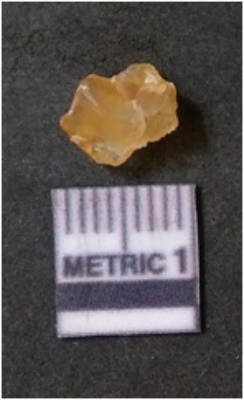 | Description / विवरण | It is chalcedony flake, translucent in appearance. The piece shows sharp pointed ends and flake scars on the surface as a result of flaking. The piece shows a bulb of percussion. |