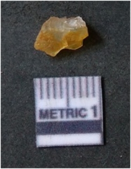 | Description / विवरण | It is chalcedony flake, translucent in appearance. The piece shows sharp pointed ends and flake scars on the surface as a result of flaking. The piece shows a bulb of percussion. |