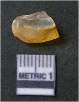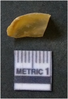 | Description / विवरण | It is chalcedony flake, translucent in appearance. The piece shows sharp pointed ends and flake scars on the surface as a result of flaking. The piece shows a bulb of percussion. |