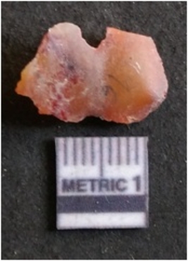 | Description / विवरण | The quartz flake has sharp flaked edges and pointed ends as a result of flaking. The piece is semi-transparent in nature with irregular fracture pattern. The piece is roughly triangular in shape and has a prominent bulb of percussion. |