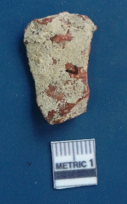 | Description / विवरण | It is a blade fragment. The sides are sharp and retouched. It is dark reddish in colour. The striking platform and the bulb of percussion is clearly visible. The flake scars are clearly seen on the dorsal surface while the ventral surface is plain. The soil incrustations are clearly seen on the surface. |