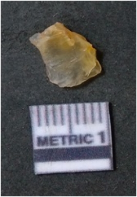 | Description / विवरण | It is chalcedony flake, translucent in appearance. The piece shows sharp pointed ends and flake scars on the surface as a result of flaking. The piece shows a bulb of percussion. |