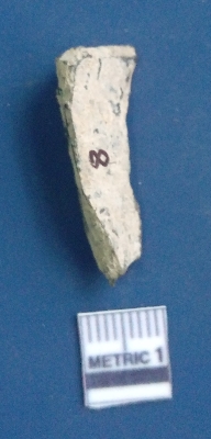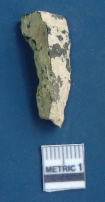 | Description / विवरण | It is a blade fragment. The sides are sharp and retouched. It is greenish in colour. The striking platform and the bulb of percussion is clearly visible. The flake scars are clearly seen on the dorsal surface while the ventral surface is plain. The soil incrustations are clearly seen on the surface. |