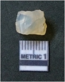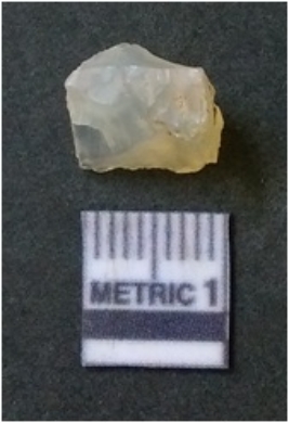 | Description / विवरण | It is chalcedony flake, translucent in appearance. The piece shows sharp pointed ends and flake scars on the surface as a result of flaking. The piece shows a bulb of percussion. |