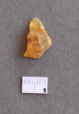 | Description / विवरण | It is a chalcedony fragment, with a bulb of percussion on the ventral side. Cortex on one end. |