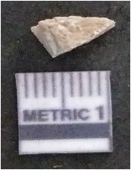 | Description / विवरण | The quartz flake has irregular fracture pattern and sharp flaked edges as a result of lithic knapping activity. The piece is pale, with surface flake scars and a bulbous end. |