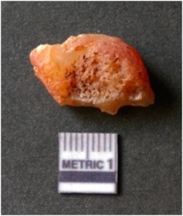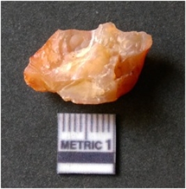 | Description / विवरण | It is chalcedony flake, translucent in appearance. The piece shows sharp pointed ends and flake scars on the surface as a result of flaking. The piece shows a bulb of percussion. |