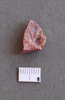 | Description / विवरण | It is a chert fragment, with a striking platform, cortex on one end; there are many flake scars with ripples on it. |