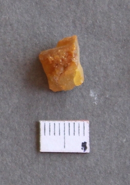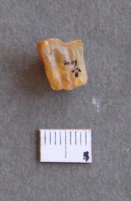 | Description / विवरण | It is a chalcedony fragment, with a bulb of percussion on the ventral side. Cortex on one end. |
