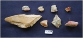 | Description / विवरण | Fluted Core on Chert, Eleven paralle sided bladescars on the surface, prepared platform along one ends, byproduct of stone tool manufacturing. |