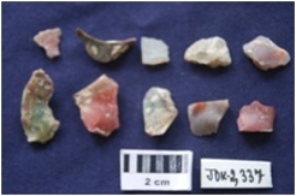 | Description / विवरण | Lithic Debitage, byproduct of stone tool manufacturing on Chalcedony and Chert. |