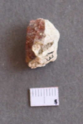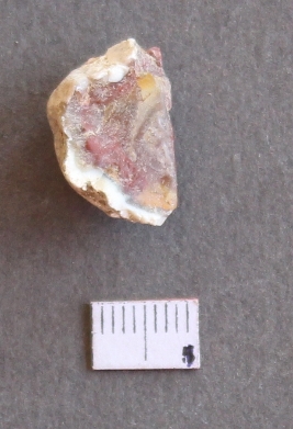 | Description / विवरण | It is an agate fragment, with bulb of percussion on ventral side of the fragment. Flake ridges on the surface. It is a banded agate and translucent in appearance. |