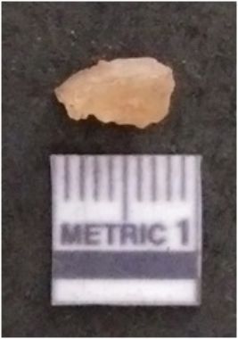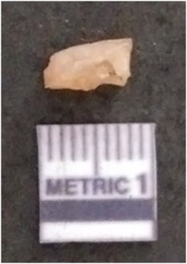 | Description / विवरण | The chalcedony flake is pale in color and translucent in appearance. The piece has s harp flaked ends and a bulbous end due to flaking. The flake has a crypto-crystalline silica matrix. |