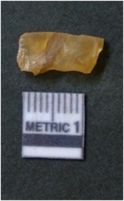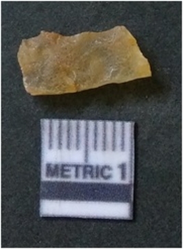 | Description / विवरण | It is chalcedony flake, translucent in appearance. The piece shows sharp pointed ends and flake scars on the surface as a result of flaking. The piece shows a bulb of percussion. |