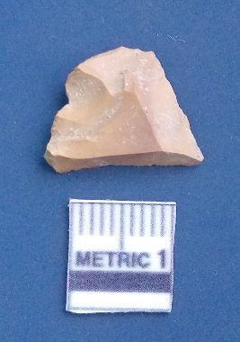 | Description / विवरण | It is a blade fragment. The sides are sharp and retouched. It is brownish in colour. The striking platform and the bulb of percussion is clearly visible. The flake scars are clearly seen on the dorsal surface while the ventral surface is plain. |
