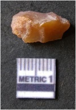 | Description / विवरण | It is chalcedony flake, translucent in appearance. The piece shows sharp pointed ends and flake scars on the surface as a result of flaking. The piece shows a bulb of percussion. |