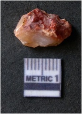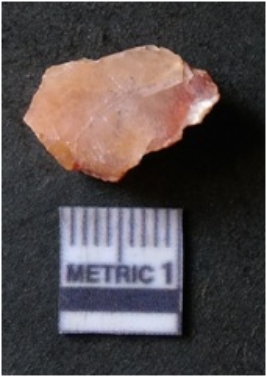 | Description / विवरण | The chalcedony flake is flat, pale yellow in color and has cortex on the dorsal side. The piece has sharp flaked edges. |