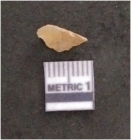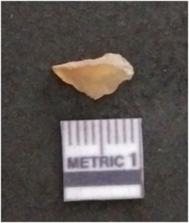 | Description / विवरण | The chalcedony flake is pale in color and translucent in appearance. The piece has s harp flaked ends and a bulbous end due to flaking. The flake has a crypto-crystalline silica matrix. |